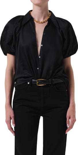 Leila Puff Sleeve Cotton & Silk Button-Up Shirt