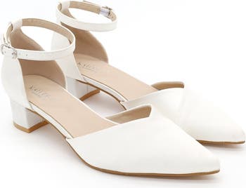 Leila Satin Pointed Toe Low Block Heels Wedding Shoes