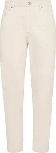 - Metal button closureFront pockets with watch pocketBack patch pocketsPlain hemLeisure fit: the rise and seat are soft and the proportions of the leg are tapered