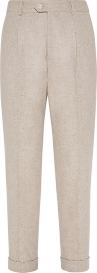 The light texture of the flannel enhances the excellence of the warm, impalpable pure cashmere yarn. The tailored fabric is enriched by the distinctive mélange effect, which delicately brings out the season's colors. The cupro lining provides added comfort.