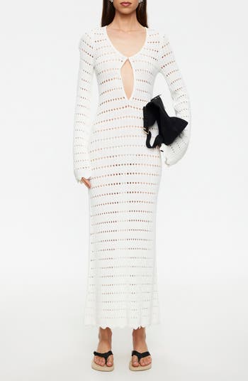 Extend sweater dress season with a super summery option offered in an open-stitch design and knit from lightweight cotton.