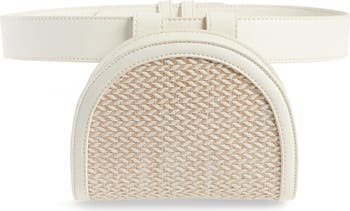 Rock two trends at once with this super-chic belt bag accented with a woven straw detail.