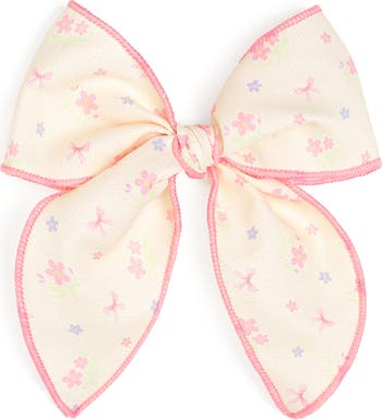 This soft fabric bow clip features a delicate pastel floral print, perfect for adding a sweet, gentle touch to any hairstyle.