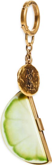 Hammered medallion hardware embossed with a house-signature Cassandre monogram details this lemon-shaped key ring that adds a delightful twist of citrus to your look.