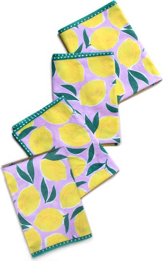 Lemon Print Organic Napkins, 4 Pack Freshen up your table with these lemon-printed napkins. This set of four organic napkins features hand-painted artwork by artist Gabrielle Mandel. Perfect for al fresco dining or for creating a refined yet playful tablescape. About this product: Set of four napkins: size: 18”x 18” Material: GOTS certified Organic cotton Small batch made in India Machine washable Original Artwork by Gabrielle Mandel