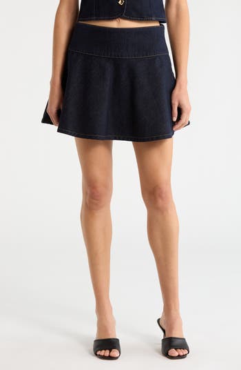 Made from dark-wash denim, this stretch-kissed skirt is updated in a leggy length and cut in a swingy flared silhouette.