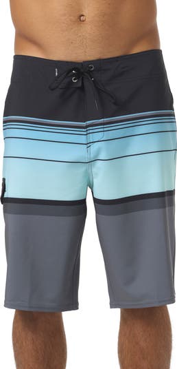 Stretchy, water-resistant fabric keeps you moving comfortably in and out of the water in board shorts constructed with antirash seams and a secure pocket.