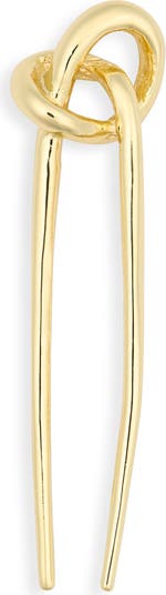A golden finish brings light-catching allure to this knotted metal pin that stylishly secures your chignon.