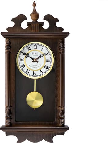 Leo 21in Chestnut Wood Chiming Pendulum Wall Clock