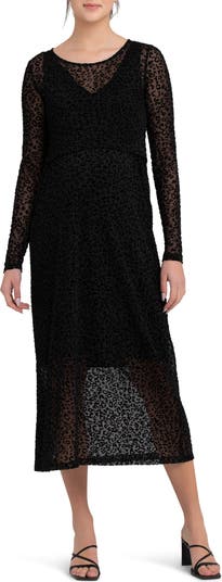 Leo Flocked Long Sleeve Maternity/Nursing Dress