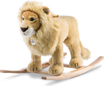Move over, rocking horse—the rocking lion is in town! With an improved design and especially high-quality woven fur, this plush king of beasts is sized for even the smallest riding enthusiasts—while the solid beech rockers and stainless-steel inner frame are sturdy enough to support up to 330 pounds. We'd expect no less from Steiff: internationally renowned for exceptional quality, traditional materials and proven manufacturing techniques, the brand has been making plush toys and collectibles that have set a standard for heirloom-quality products since 1880.