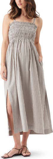 Experience summer in style with our Ripe Leo Stripe Shirred Dress. The piece features a fitted shirred bodice with a gathered skirt, making it a standout wardrobe item. Crafted from a blend of polyester and cotton, it offers a breezy yet resilient wear, ensuring comfort on those sun-drenched days. The straight neckline, adjustable, and removable straps contribute to its charm. Not to forget the practicality, added by the side seam pockets and splits at the side seams. Style it with sandals for a daytime look, or elevate it with heels for sunset soirees. Stay chic and stylish with this versatile dress.
