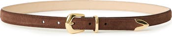 Gilded hardware offers a cool, polished counterpoint to the plush suede of this belt crafted for a casual addition to your look.