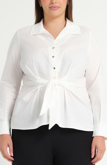 Bold yet polished, this button-up top is made from supersoft cotton with gleaming buttons and a waist-defining tie in front.
