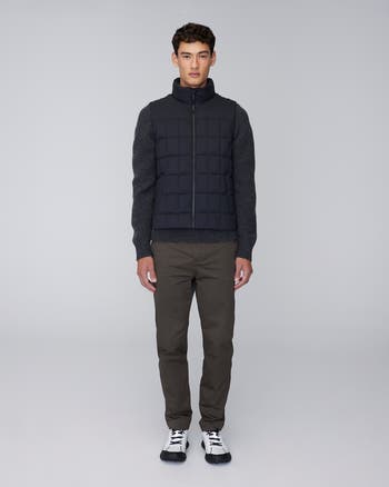 Meet Leo, the stylish and functional layer that combines a sleek aesthetic with practical design. Made from waterproof, breathable Wool Like 2L® fabric and insulated with ethically sourced down, this vest epitomizes comfort and style. It's your perfect ally for moderately cold days, balancing everyday wearability with weather-resistant features.