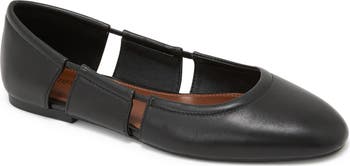 Sleek side cutouts and and elasticized topline bring comfort and dimension to a streamlined ballet flat shaped from rich leather.