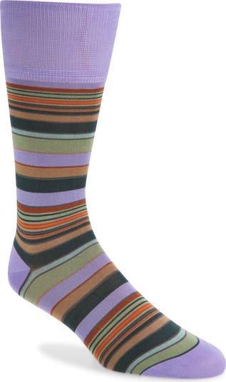 Colorful stripes pattern these Italian-made silk-blend socks for a versatile finish that adds style to your wardrobe. Stretch delivers a tidy fit, smooth seams keep things comfortable and ribbed cuffs help them stay put from first step to last.