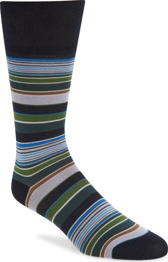 Colorful stripes pattern these Italian-made silk-blend socks for a versatile finish that adds style to your wardrobe. Stretch delivers a tidy fit, smooth seams keep things comfortable and ribbed cuffs help them stay put from first step to last.
