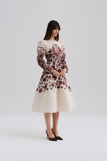 Malina Leoni Silk Blend Midi Dress, Alternate, color, Wine Peony
