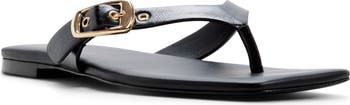 A golden buckle, sleek faux leather and a square toe elevate this cushioned flip-flop into a modern essential.