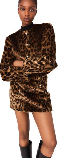 - Short faux leopard fur jacket