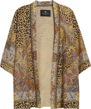 Leopards may not change their spots, but Etro's signature paisley swirls give them a decidedly groovier spin on this Italian-silk twill jacket with elegant, cape-like drape.