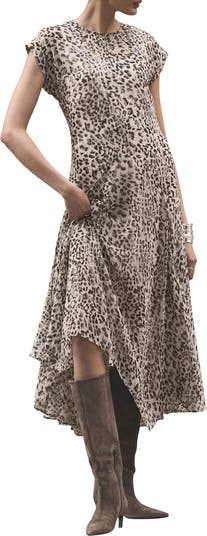 Leopard Print Cap Sleeve Midi Dress