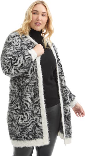 Get in touch with your wild(ly) soft side...this cardigan is defined by its chic leopard-print design and classic cardigan silhouette. It's made from signature eyelash fabric, which gives it an ultra-sumptuous feel and soft handle. Open front.