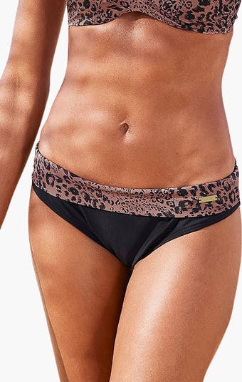 Classic bikini bottom with an animal-printed waistband.
