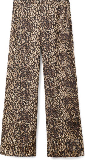 A fierce leopard print enhances the cool vibes of these satin pants cut in a straight-leg silhouette.