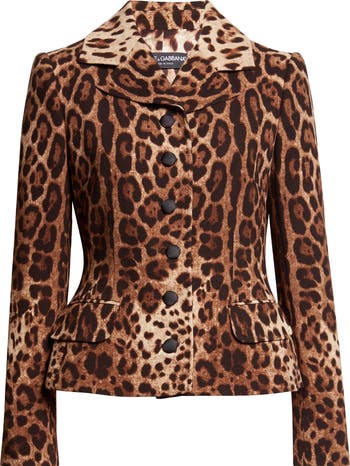 D&G's iconic leopard print makes a fierce statement on this sculpted Italian-wool crepe hourglass jacket structured with soft padding. A lustrous stretch-satin lining and a neat row of canneté-covered buttons underscore the refined craftsmanship.