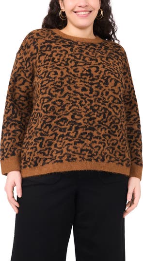An allover animal print adds a fierce aesthetic to this soft and cozy sweater designed in a slightly oversized fit for easy movement.