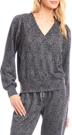 Leopard spots enliven a comfy and lightweight top framed by voluminous sleeves and finished with a wide waistband for a blouson effect.