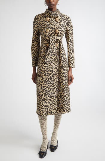 Jewelry-inspired pavé-crystal buttons bring Valentino's signature glamour to this double-breasted coat sewn from leopard-print wool.