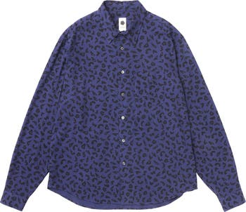 A custom leopard pattern viyella fabric shirt, incorporating the vowels alphabet.