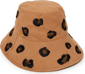Leopard Spot Embroidered Long Brim Bucket Hat