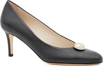 A polished dome stud brings opulence to an Italian-made pump featuring a streamlined leather upper and svelte heel. A foam-cushioned footbed with built-in arch support delivers optimal comfort.