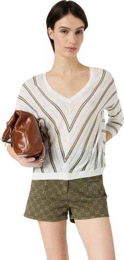 Crafted from lightweight linen and cotton, the Lerya sweater is enhanced with fine openwork stripes forming a chevron pattern. Its flattering V-neckline and feminine cut make it a mid-season essential.