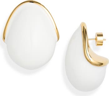 Oversized orbs in smooth enamel framed by golden rims bring modern minimalism to your lobes.