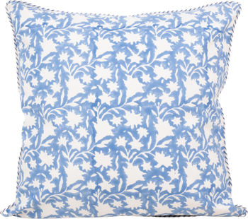 A garden in bloom, captured in cotton. The Les Fleurs Blockprint Pillow is a celebration of artisanal craftsmanship, where delicate floral motifs come to life through the ancient art of hand block printing. Each petal and vine is pressed by hand, creating a design that is charming just like nature itself. Expertly block-printed by an eighth generation family of artisans in Jaipur, this piece reflects their deep passion for their craft. The artisans are stewards of a craft that has been passed down to them generation after generation. From the master block makers who carve the blocks in a village to the hands that print the cloth, there are many hands that go into making each piece. Blockprinting is no mere feat, it requires exceptional skill, an unwavering hand, incredible precision and stamina. By selecting this handmade piece, you contribute to craft revival and supporting rural artisan communities. Thank you for supporting our artisans. Material: 100% Cotton Dimensions: 20" x 20" inches