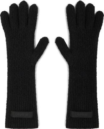 Bundling up feels ultraluxe with these ribbed gloves knit from a wool-enriched alpaca blend with a soft, delightfully fuzzy handfeel. An embroidered logo on a tonal band of grosgrain adds a signature Jacquemus touch.