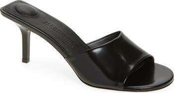 Unexpected shapes collide on an aptly named sandal that features this season's cube and sphere motifs stitched into the lambskin lining. A rounded toe and striking stiletto offer another clash of contrast to this Italian-crafted style.