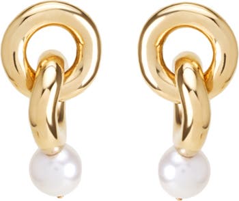 - Les Perles by Lanvin earrings Two curved and intertwined brass rings Glass beads Engraved Lanvin logo Made in France