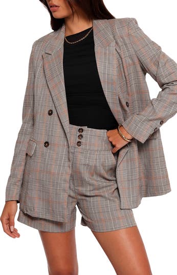 A boxy, double-breasted silhouette brings a bit of retro flair to a plaid blazer that's the perfect way to elevate your 9-to-5 style.