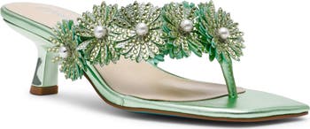 Make your special day extra magical with this kitten-heel sandal featuring sparkling, dimensional floral embellishments.