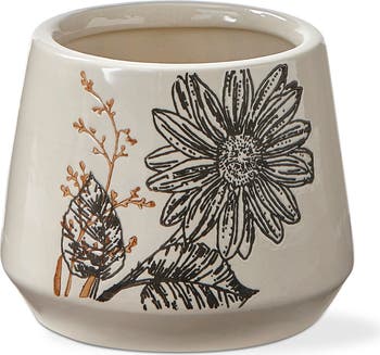 A charming planter that brings a playful and natural vibe to your decor. Showcasing stoneware construction, wax resist and hand painted floral detail, this decorative planter gives your household foliage a beautiful upgrade. Features include a drainage hole with silicone plug. Fits up to a 2" drop in pot.