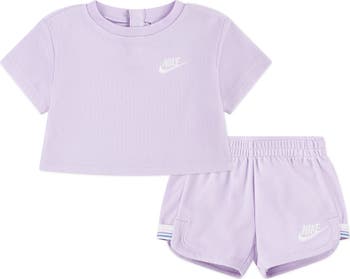 They'll stay cool and comfortable through warm-weather fun in this T-shirt and shorts set made with soft and cozy towel terry cloth.