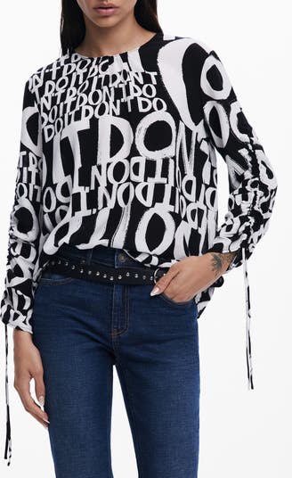 Acting like that one angel on your shoulder, this ruched-sleeve top suggests taking a moment to consider what you're about to do.