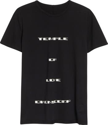 This longline cotton T-shirt hits with a stark print and a washed finish that feels soft against the skin. Level front shoulder seams sharpen the silhouette with that unmistakable Owens bite.