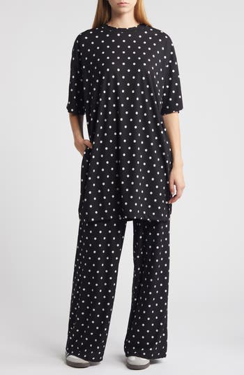 Billowy plissé fabric means lovely movement in this tunic and pants made with a bit of stretch.